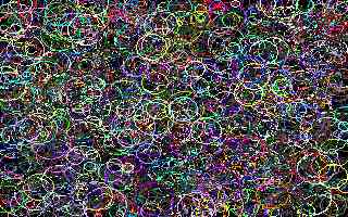 SCREEN 13 DO CIRCLE (RND*320, RND*200), RND*20, RND*256 LOOP UNTIL INKEY$ <> ""